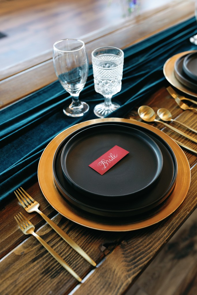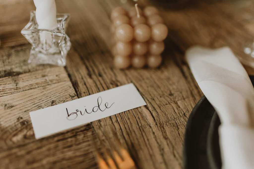 add a personalized touch for your wedding guests with place cards & name tags to guide them.